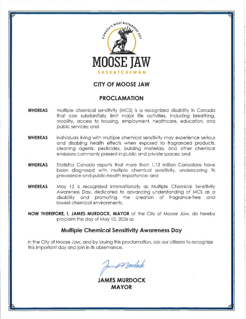Recognition of MCS Awareness Month and Day is not symbolic. It helps ensure that public spaces, services, and programs are accessible and inclusive for people whose health and participation depend on reduced chemical exposures.