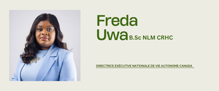 Freda Uwa est une dirigeante reconnue à l’échelle nationale dans les domaines de l’accessibilité, de la santé mentale et des droits des personnes en situation de handicap, grâce à son expérience vécue et à sa vaste expertise professionnelle. À titre de dirigeante au sein du réseau Independent Living Canada (IL Canada), elle porte une voix forte et unifiée pour les Canadiens en situation de handicap. IL Canada est un réseau national de 24 centres membres et, sous la direction de Freda, il exerce des fonctions de supervision essentielles, notamment en dirigeant un projet de recherche national pour Normes d’accessibilité Canada portant sur l’accessibilité des festivals et des événements.