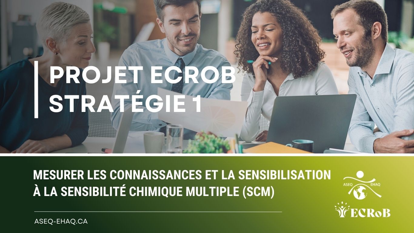 Le projet Épauler la Communauté et Retirer les Barrières (ECRoB) est une initiative nationale dirigée par l’Association pour la santé environnementale du Québec – Environmental Health Association of Québec (ASEQ-EHAQ). Le projet vise à faire progresser l’accessibilité, l’inclusion et des environnements intérieurs plus sains pour les personnes vivant avec la sensibilité chimique multiple (SCM) partout au Canada.
